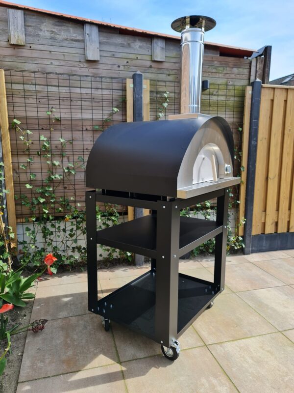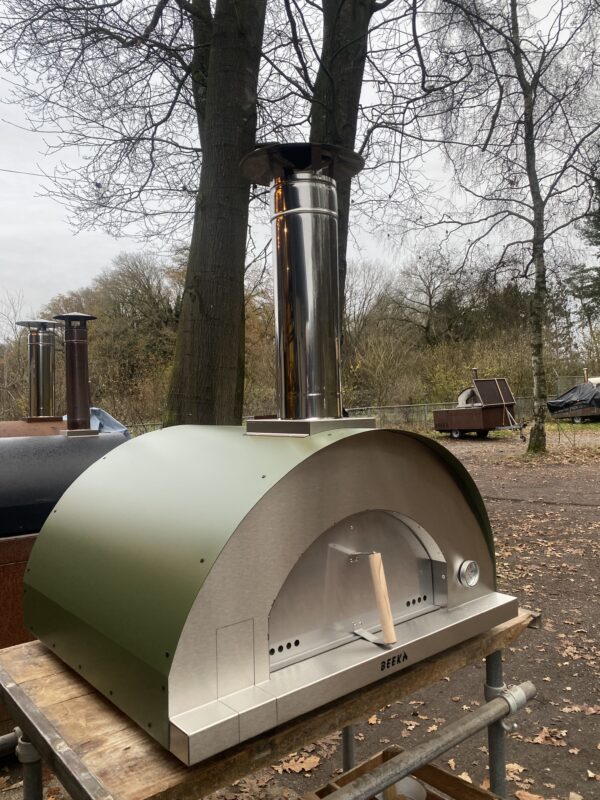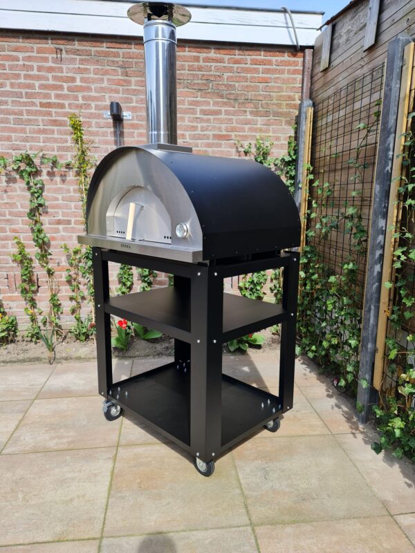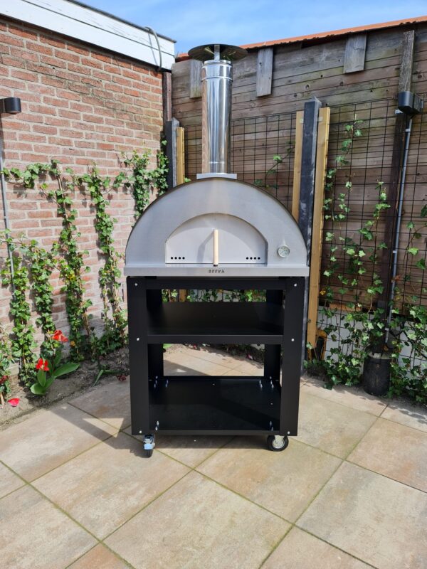Bevat: Pizzaoven, RVS deur 2mm dik!, schoorsteen, thermometer merk Cewal (Italiaans), RVS vuurscherm/ firebox, pizzaschep merk Falci